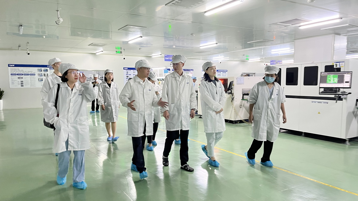On the morning of July 16th, Wang Lin from the Provincial Development and Planning Research Institute and Zhang Dan, the Party Secretary of the Development and Reform Commission of Haining City, accompanied by relevant leaders from the High-tech Zone, conducted a research visit to Haining Tongwei to understand the development of the enterprise and conduct preliminary research for the implementation of the "15th Five-Year Plan" of Haining City.The research team visited the SMT workshop on site, learned about the company's related products and output value, and expressed their affirmation of the on-site equipment and management.In the discussion session, Wang Lin pointed out that the economic environment would remain sluggish for some time to come, and she learned about the relevant countermeasures of enterprises.Zhang Dan said that the Municipal Development and Reform Commission would actively assist enterprises in solving difficulties in development, and hoped that Haining Tongwei would become better and better in the future.